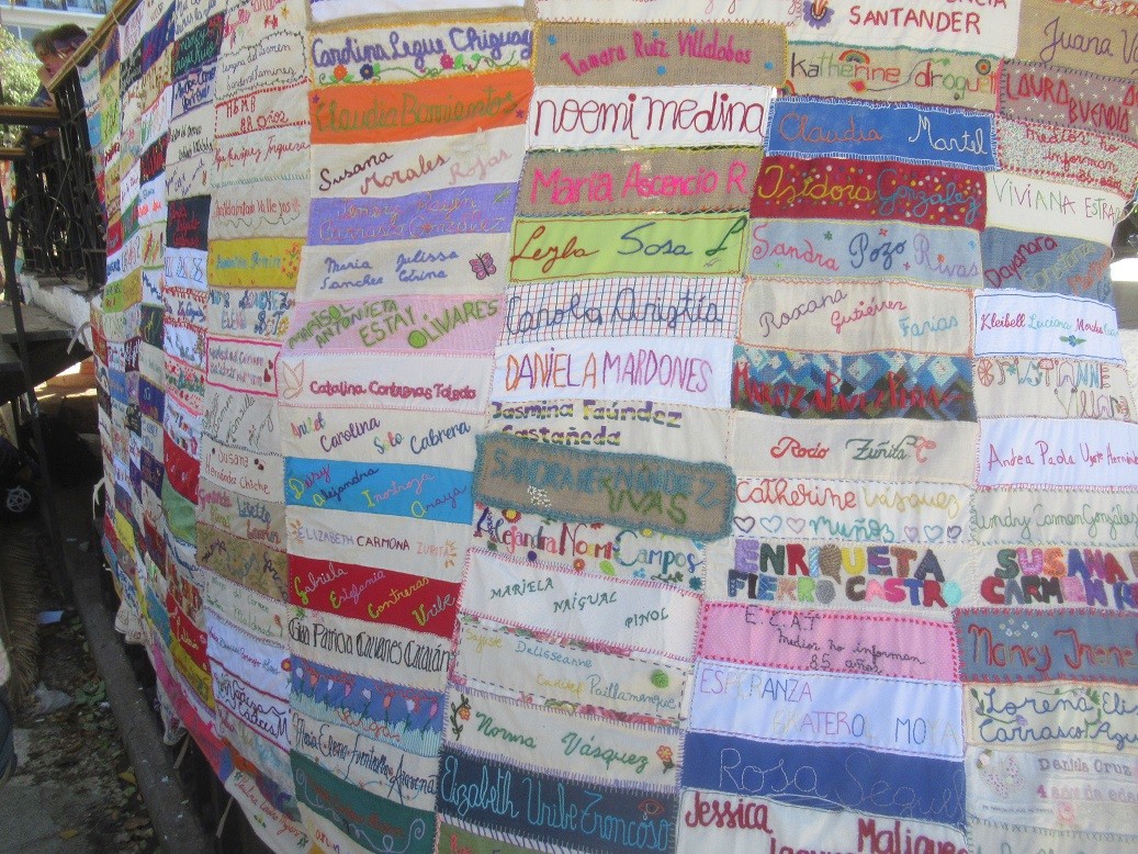 En una crónica anterior, realizada el 7 de Noviembre pasado, relaté cómo se había formado la Colectiva “Bordando Dignidad y Memoria”, cuyas integrantes, Gabriela, Alejandra y Natali, se conocieron en una actividad que se realizó en diciembre del año pasado en la ex Cárcel de Valparaíso denominada “Mil Agujas por la Dignidad”. Motivadas por la posibilidad de expresar ideas y conceptos políticos mediante el arte popular del bordado, decidieron emprender un proyecto para hacer visible el nombre de las mujeres asesinadas víctimas de femicidios durante los últimos diez años en Chile. En esa crónica escribí: “Gabriela le propuso a Natalia y Alejandra realizar una 'Acción Textil' para hacer visible a las mujeres que han sido víctimas de femicidios durante estos últimos diez años, tomando como referencia la legislación del año 2010 en nuestro país, que estableció como delito a efectos penales el femicidio".