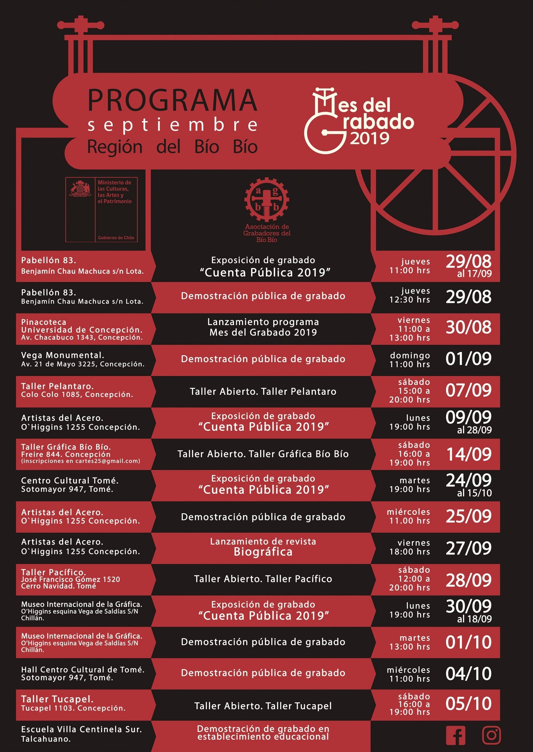 La Asociación celebró por primera vez el Mes del Grabado en septiembre de 2015 en el marco del Día de las Artes Visuales, que se conmemora el 29 de ese mes, con la idea de compartir esos procesos y el intenso trabajo en desarrollo. Desde esta vocación común, la región del Biobío se ha convertido en uno de los polos de mayor desarrollo para el grabado en el país, traspasando las fronteras regionales e incluso nacionales.