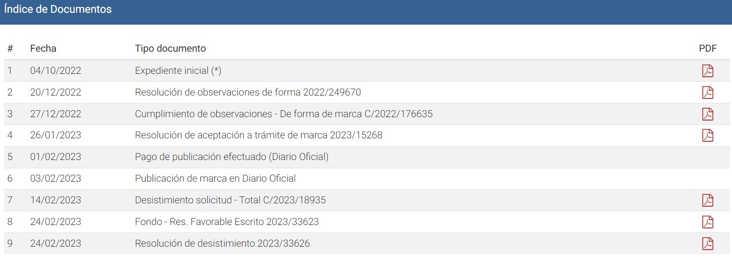 Pantallazo de expediente disponible en Inapi