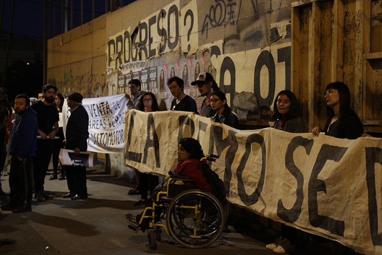 La convocatoria se realizó fuera del terreno en disputa en la calle Paicaví, entre Carrera y Bulnes, que en julio de este año apareció tapado en planchas de madera y vigas de construcción. Los vecinos de la población nunca tuvieron conocimiento del proyecto inmobiliario que se está instalando en su antiguo parque y que tenía permisos otorgados por la municipalidad de Concepción y fue vendido a la empresa privada por el SERVIU del gobierno anterior.