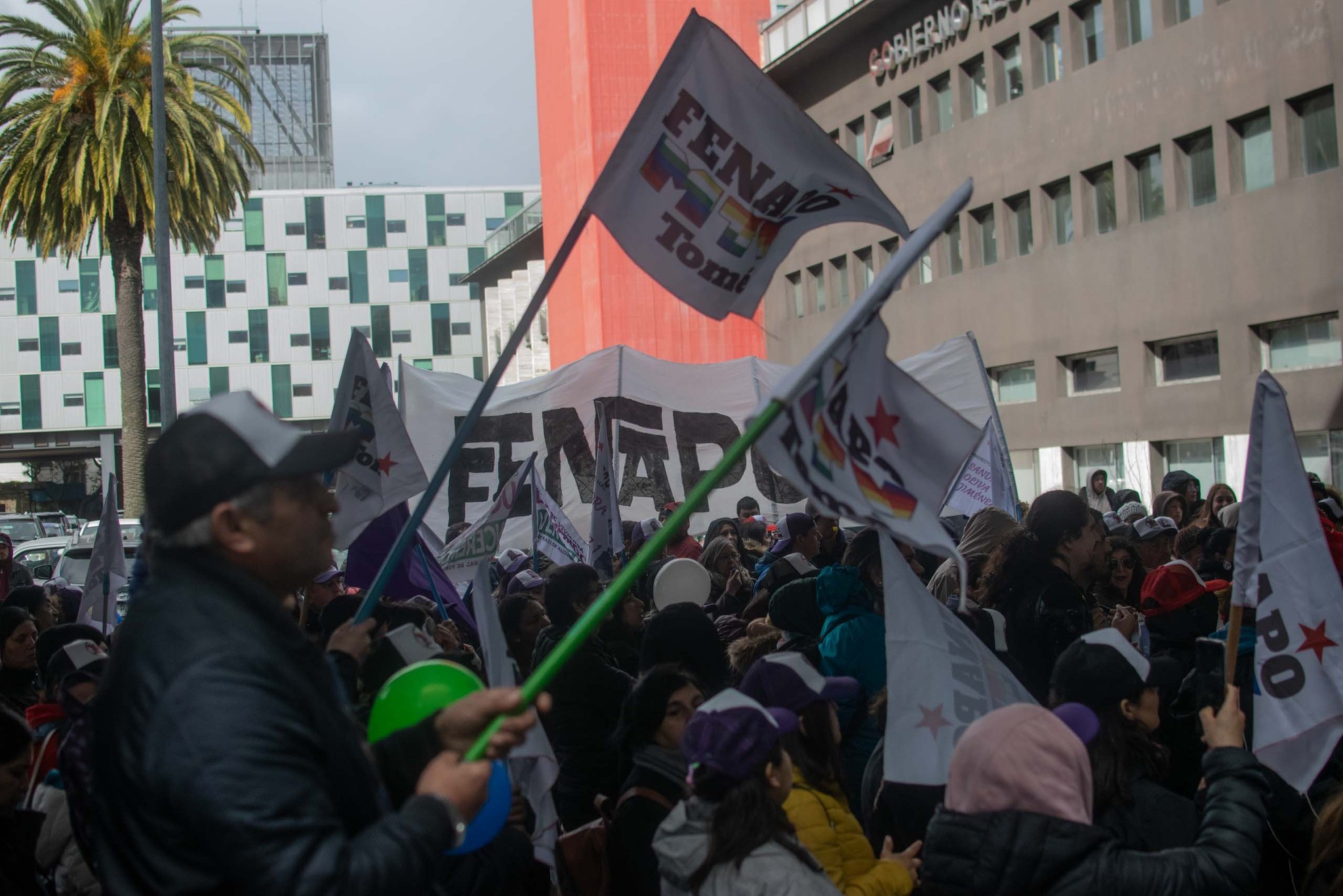 La masiva marcha copó varias cuadras de la avenida escoltada por Carabineros. Al llegar a las inmediaciones del Gobierno Regional y del SERVIU, los y las pobladoras se agolparon para apoyar a dirigentes que entraron al edificio a entregar la carta.