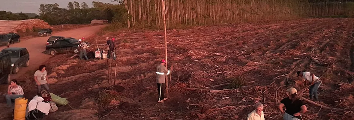 Según una nota del movimiento, la producción a gran escala de eucalipto de Suzano se ha expandido enormemente en la región durante los últimos 30 años. El uso de plaguicidas en monocultivos también se realiza mediante aspersión aérea.