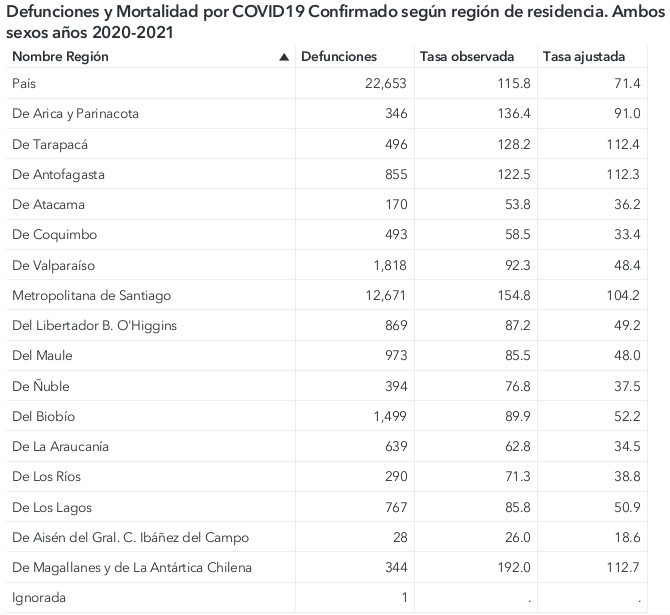 La cifra total de personas fallecidas asociadas a Covid-19 alcanzó las 22.231 en 2020 y ya van 8.151 personas sólo este 2021, sumando un total de 30.382. La región del Biobío registró 1.065 muertes totales en 2020 y 976 muertes en 2021 alcanzando un total de 2.041.