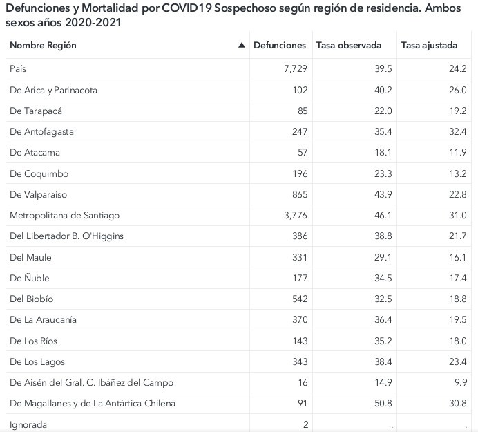 Mientras que la cifra de fallecimientos sospechosos de Covid-19 fueron 5.390 en 2020 más 2.339 personas este 2021 alcanzando 7.729 El Biobío presentó 241 muertes en 2020 y 301 muertes sospechosas en 2021 para alcanzar 542 personas.