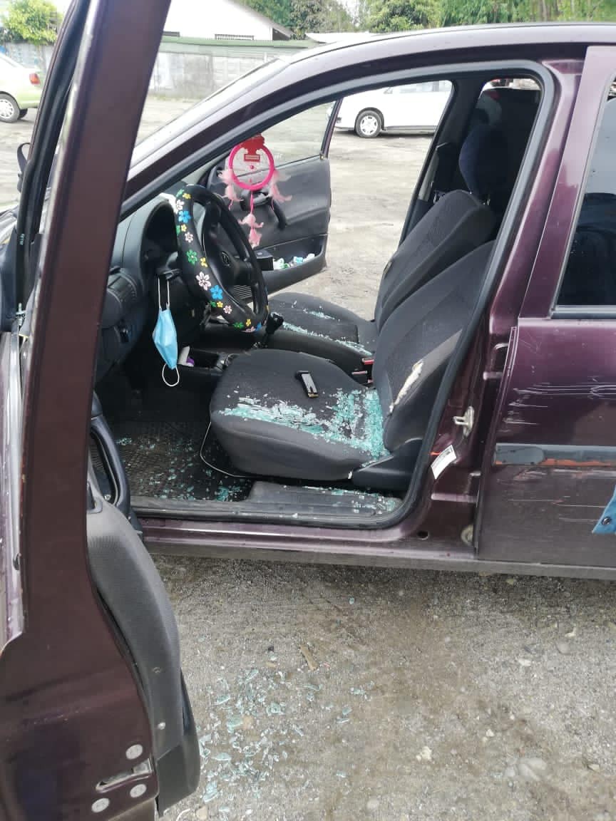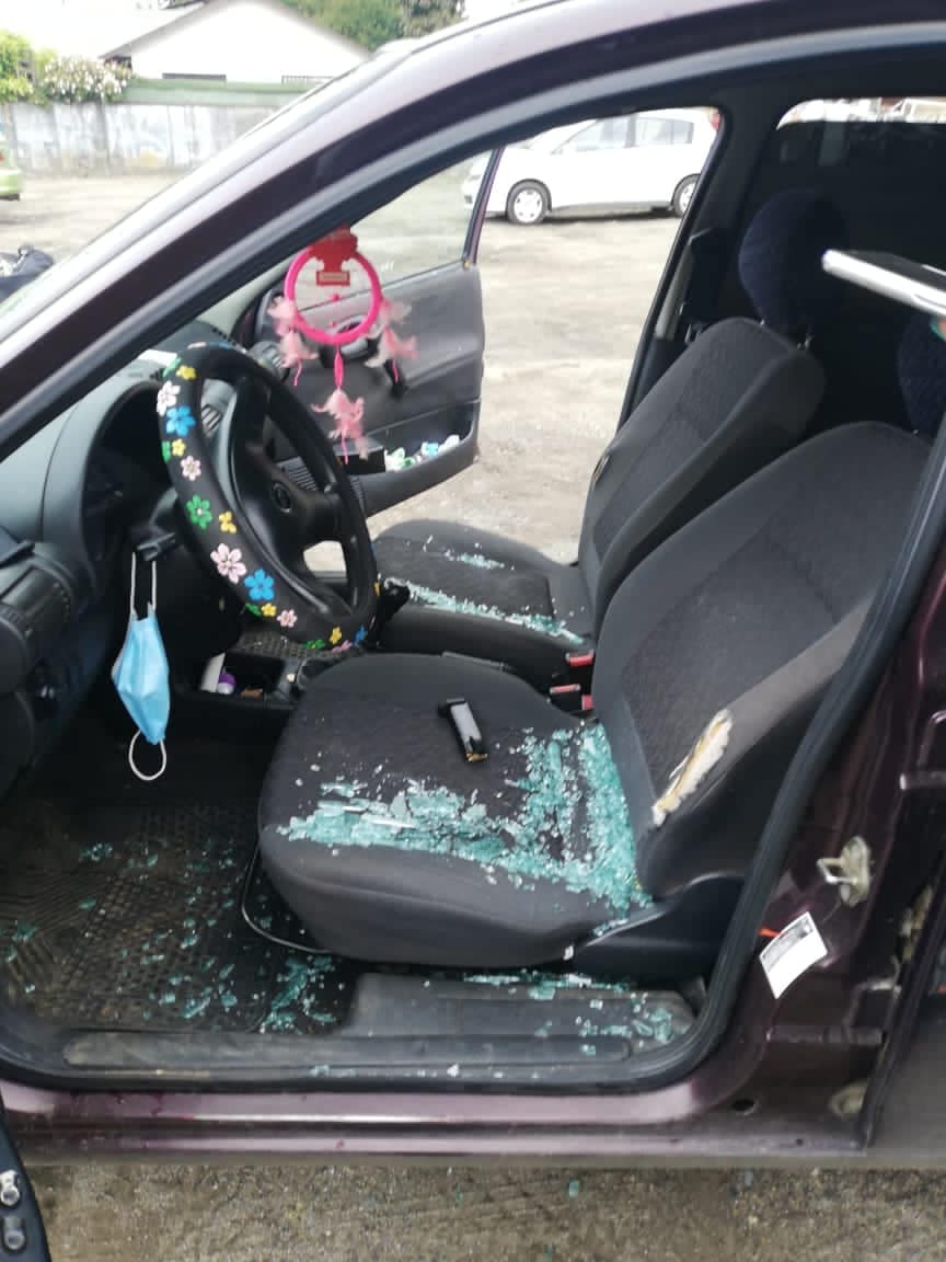 En ese momento "se me tira el militar en toda la cara, me da con la pistola en el vidrio de piloto, y con el cargador de la pistola me da en la cara", ante lo cual "yo llegué y seguí avanzando, no lo atropellé ni nada", indica la mujer afectada, agregando que "cuando él saca la mano yo sigo avanzando porque me dio miedo, y más adelante paré porque no iba bien".