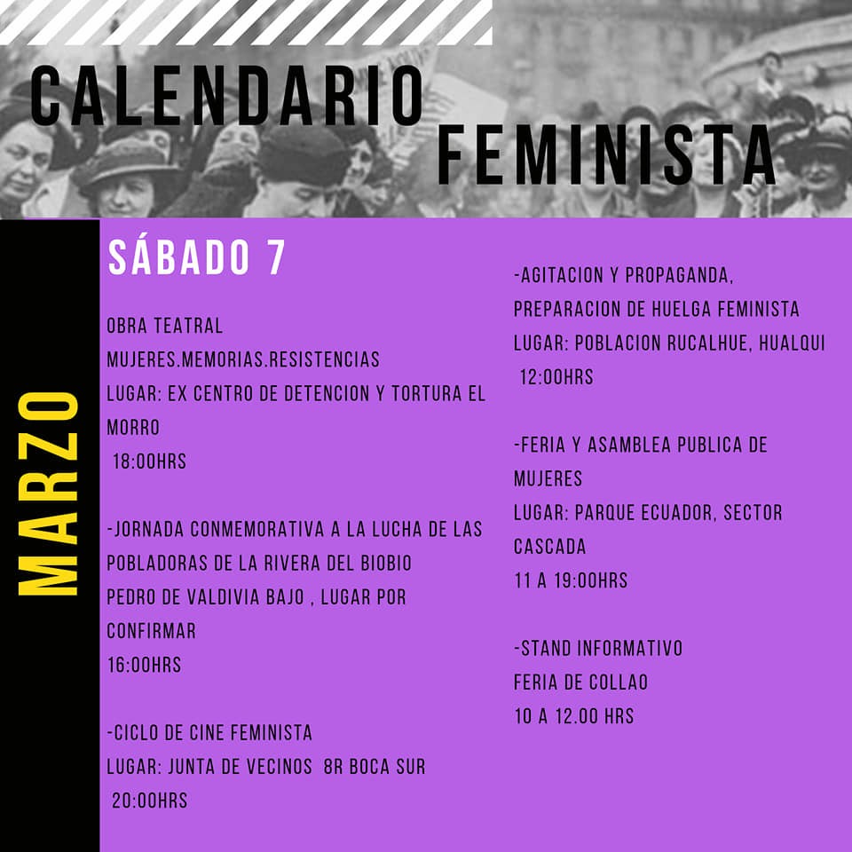 En tanto, para el lunes 9 de marzo, el llamado es a una marcha a las 17 horas en Paicaví con Carrera y a paralizar el país con la Huelga General Feminista, entendiendo que del trabajo de las mujeres depende la estabilidad del capitalismo neoliberal y heteropatriarcal, sistema que las explota y oprime doblemente.