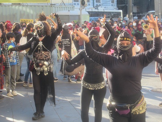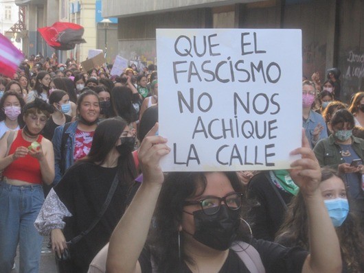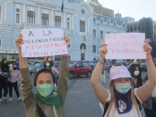 Música, bailes, cánticos, lienzos y pancartas, fueron parte de esta multicolor y alegre expresión de protesta callejera. La consigna “¡Valparaíso… Antifascista!”, que ha estado presente desde hace muchos años en las distintas movilizaciones que se realizan acá en el Puerto, resonó con fuerza a lo largo de todo el trayecto de la marcha.
