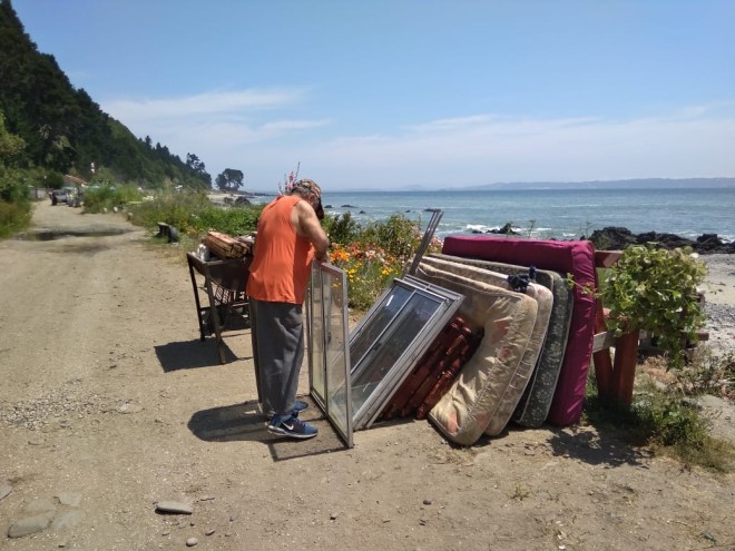 Desde comienzos de este año los y las recolectoras y pescadoras del lugar, habían sido notificadas de un desalojo por parte del municipio de Tomé, que esta desalojando a estas personas sin tener si quiera un proyecto claro sobre el futuro de estos terrenos. Cabe recordar que estos espacios estaban abandonados y que durante un proceso que data de hace treinta años, se ha cuidado y utilizado para la subsistencia de las comunidades aledañas a la playa Los Tres Pinos.