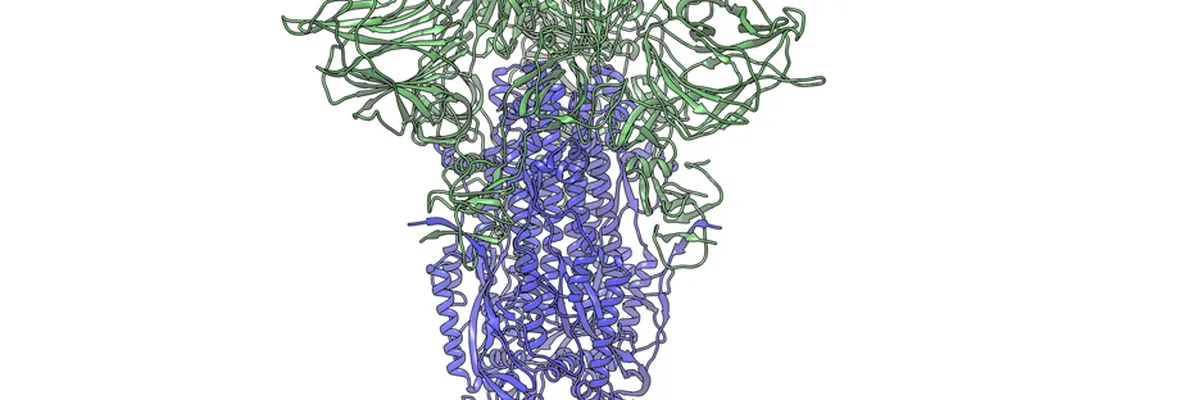 [caption id="attachment_77169" align="alignnone" width="920"] Imagen de microscopio electrónico criogénico de vista lateral de una proteína "corona" del coronavirus SARS-CoV-2. La sección S1 de la corona es mostrada en verde y la porción S2 en púrpura. Este sistema de 2 piezas se ha mostrado a si mismo como relativamente inestable. Una nueva mutación ha aparecido en la variante viral más común en Nueva York e Italia que hace que está "espiga" sea más estable y más capaz de infectar células. Créditos: Laboratorio Andrew Ward, Centro de Investigación Scripps[/caption]