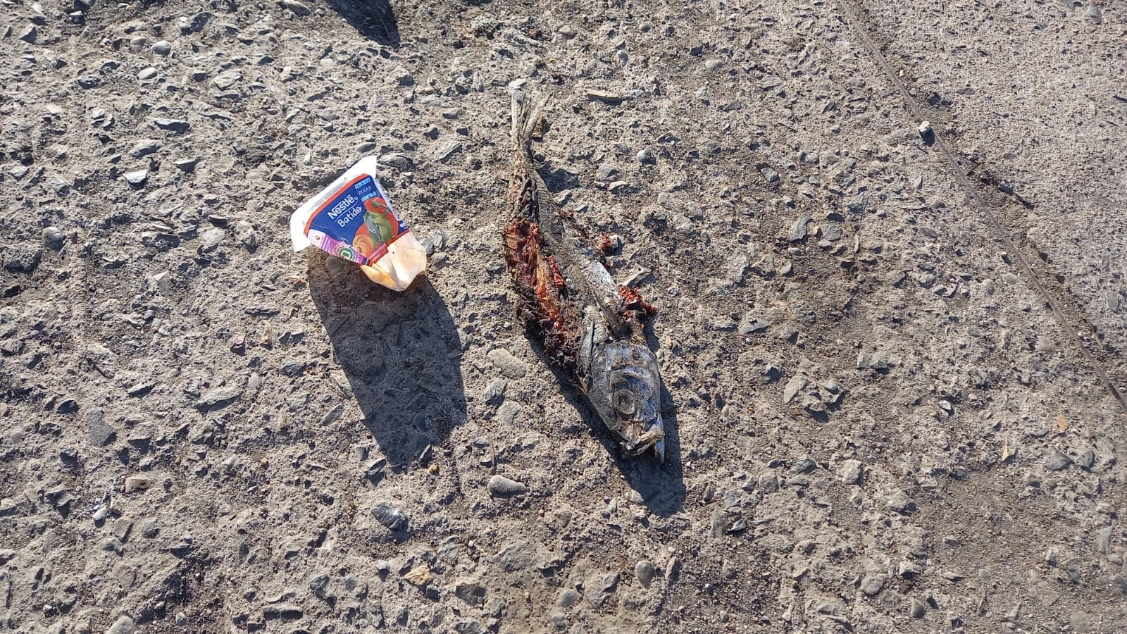 Desechos de pesqueras exparcidos en cercanías de la escuela Libertad, en Gaete, Talcahuano.