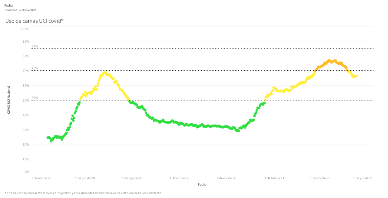 Uso de camas UCI con pacientes COVID-19 entre abril de 2020 y mayo de 2021