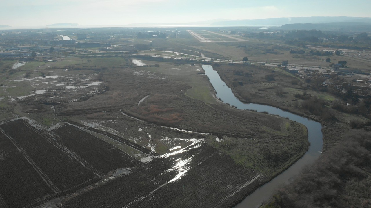 Vecinos/as de Hualpén acusan a la empresa Valmar de generar graves impactos al humedal, desviando cursos de agua como el canal Ifarle cuya denuncia esta en la DGA, rellenando todo el pajonal y compactando con maquinaria pesada el humedal Vasco de Gama que se ve en la fotografía aérea.