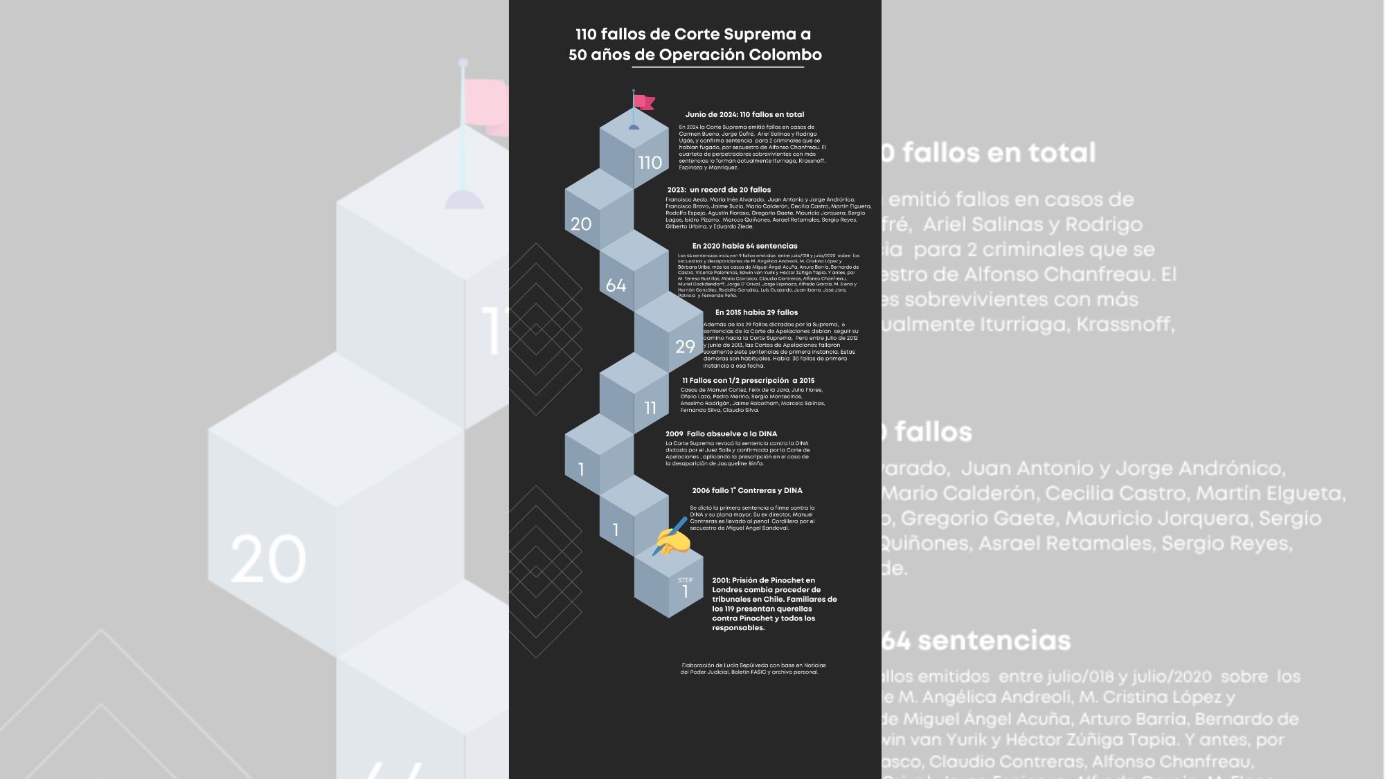 La conmemoración de los 50 años del golpe civil militar cambió el ritmo cansino de la Corte Suprema. Ese año 2023 emitió en forma inédita 20 nuevas sentencias. Diez años antes, en 2015, a 40 años de esos crímenes de lesa humanidad apenas había emitido 29 fallos a firme y la impunidad se mantenía.
