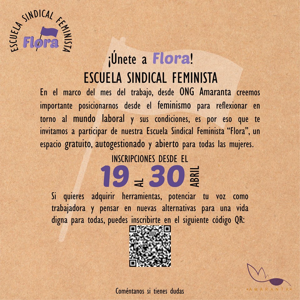 [resumen.cl] La ONG Amaranta convoca a mujeres trabajadoras a la escuela sindical feminista "Flora" totalmente gratuita y de inscripción abierta.
