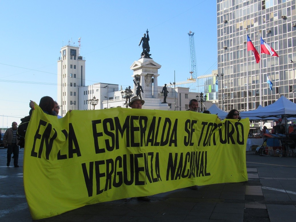 Organizaciones de Derechos Humanos de la V Región, convocados por la Agrupación Amigos del sacerdote Miguel Woodward, se reunieron la mañana de hoy domingo 9 de junio en el Muelle Prat de Valparaíso, con motivo del zarpe del 64° crucero de instrucción del Buque Escuela Esmeralda, para denunciar las violaciones a los derechos humanos que se cometieron a bordo de este barco, el que fue utilizado después del golpe de Estado de 1973 como un centro de detención y tortura.