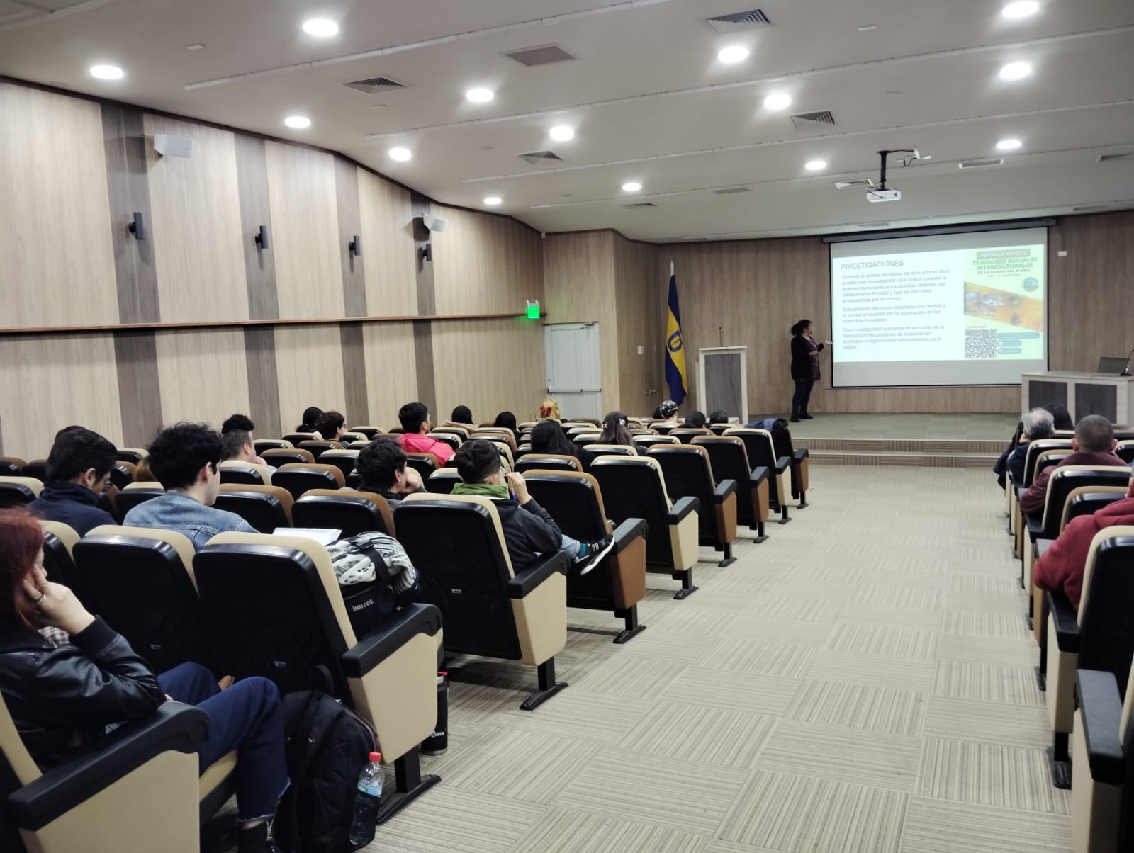 Dentro de las presentaciones estuvo la de Hughes, en donde compartió sus investigaciones sobre el modelo forestal en California y sus relaciones con Chile, los impactos de la quema de biomasa forestal para uso energético, y las redes internacionales de empresas chilenas como Bosques Arauco del grupo Angelini con inversionistas como Blackrock y Vangard.