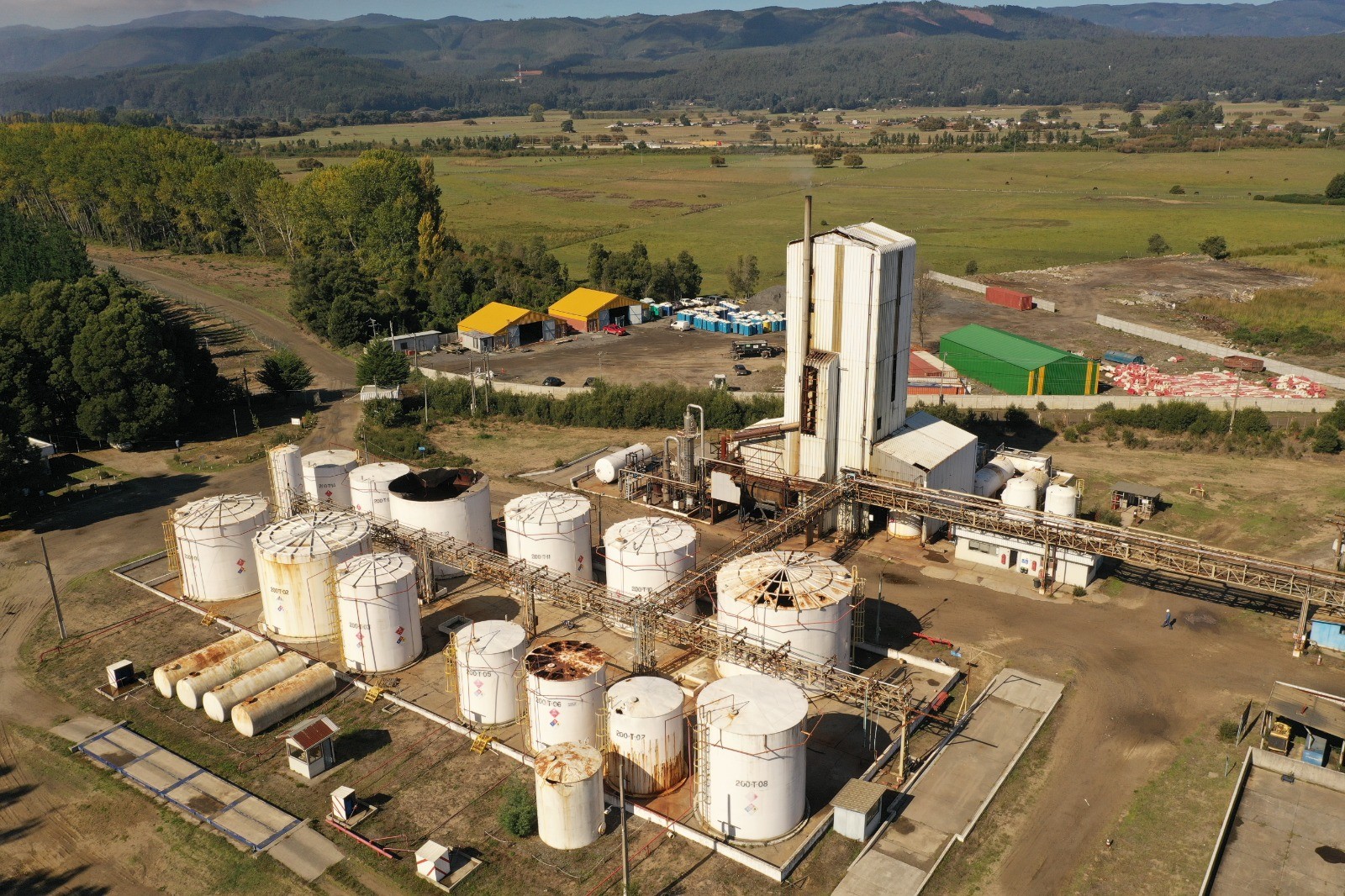 Fabrica Andina Ingredients que procesa derivados de la industria forestal. Se pueden observar instalaciones quimicas en muy mal estado en la comuna de Arauco.