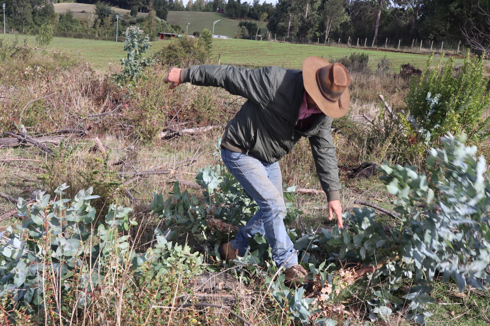 Gary Hughes en la comuna de Curanilahue, observando impactos de monocultivo forestal