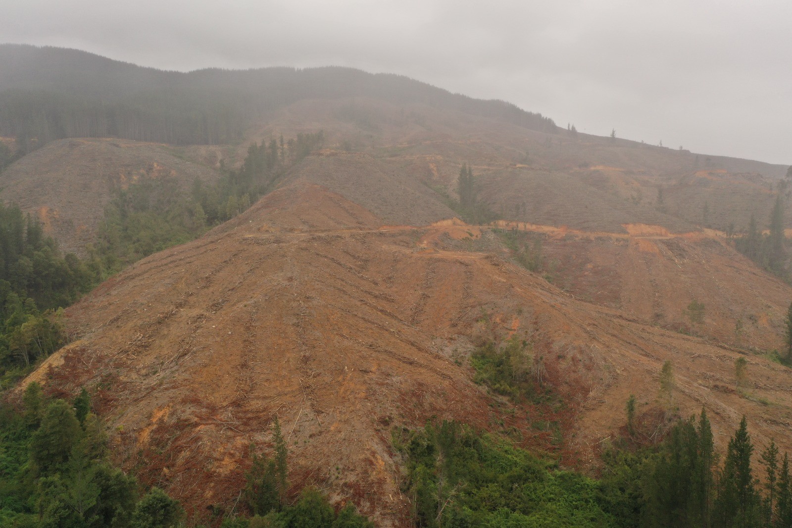 La tala rasa es una técnica que destruye diversos ecosistemas, disminuye la biodiversidad y aumenta el riesgo de erosión del suelo. Para Hughes “esta práctica es otro antecedente de los impactos negativos de la industria forestal en Chile y Wallmapu, pese a los intentos de esta industria por lavar su imagen y presentarse como verde”.