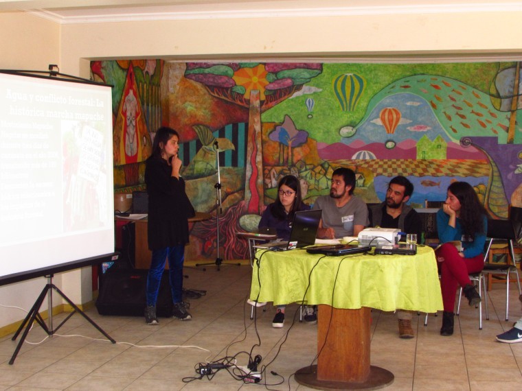 Posteriormente los asistentes compartieron un almuerzo y dinámicas lúdicas que desembocaron al segundo bloque del evento, a cargo de la ONG Defensa Ambiental. Aquí se reflexionó críticamente sobre la violación de los derechos humanos de los y las defensores de los territorios, apuntando a casos como el de Macarena Valdez, así como más recientes como el de Alejandro Castro, el cual se ha desarrollado en un manto de dudas respecto a la versión oficial sobre la muerte de este activista socio-ambiental. La exposición puso acento e la necesidad de generar un trabajo de diagnóstico, planificación, educación, comunicaciones y plan de lucha dentro de las organizaciones socio-territoriales. Además, se entregaron herramientas de gestión social de los conflictos a través de una mirada jurídica y legal, pero también a través de una propuesta de lucha en defensa de la salud y los territorios. De esta manera se presentó tanto la manera en que funciona la legislación ambiental chilena como el trabajo a llevar a cabo por parte de las organizaciones socio-ambientales, recalcando que no existen “recetas mágicas”, pero sí experiencias de lucha y conocimientos que se pueden relevar.
