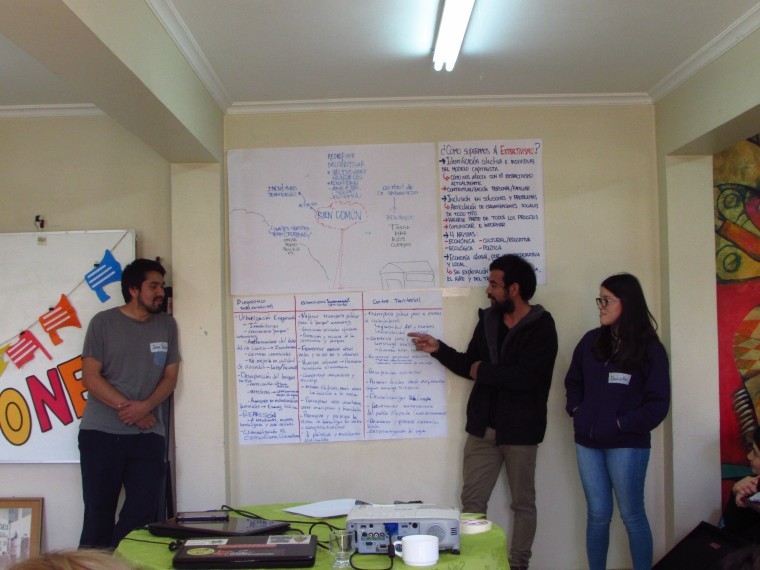 Una parte relevante de la ponencia fue la caracterización del extractivismo el cual se definió como “Componente central del actual Modelo de Desarrollo en Chile y Latinoamérica. Se lo define como un tipo particular de apropiación de recursos naturales bajo tres características que ocurren simultáneamente: 1) Apropiación y Extracción de grandes volúmenes de recursos naturales (bienes comunes) a través de intensidad extractiva sin precedentes; 2) Recursos sin procesar o con escaso procesamiento, materias primas y; 3) El destino de la extracción es el mercado global.” Además, se recordaron los principales promotores del extractivismo en nuestro país vinculados a las empresas mineras, energéticas, forestales, agroindustriales, pesqueras y acuícolas, las cuales además de impactos socioambientales como contaminación y deterioro de la salud de la población y pérdida de soberanía alimentaria, han crecido de la mano de la corrupción, violación de los derechos humanos, incremento de la desigualdad socioeconómica.