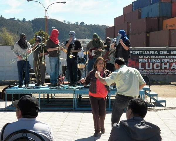 Conmemoración del Día Nacional del Trabajador Portuario, frente al puerto de Talcahuano. 2012. Actuando el grupo Care'polera, compuesto por jóvenes y estudiantes.