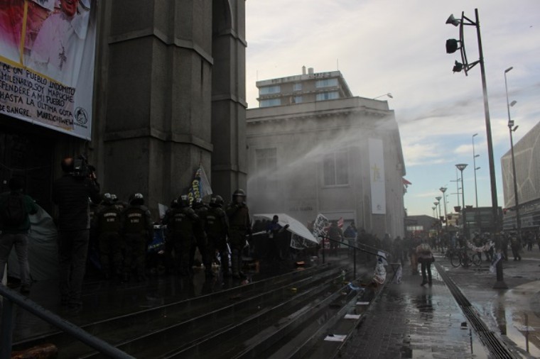 Ayer en Concepción, FF.EE. de Carabineros reprimió la marcha y desalojó el campamento exterior de la Catedral de la Santísima Concepción. Se generaron escaramuzas y enfrentamientos entre manifestantes y Carabineros, con un saldo de varias detenciones.