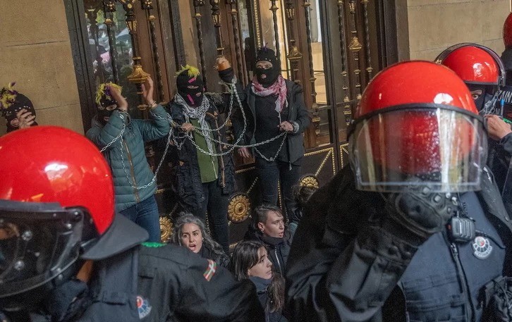 Las capitales vascas: Bilbao, Vitoria-Gasteiz, Donostia, Iruña (Pamplona) se llenaron a pesar de las lluvias con miles de manifestantes y se realizaron piquetes en acceso a sitios públicos y lugares de trabajo.