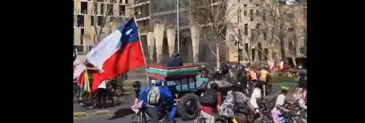 Esta mañana partidarios del Rechazo que se movilizaban a caballo y en carretas por la Alameda de Santiago se desplegaron violentamente contra participantes de una ciclomarcha del Apruebo.