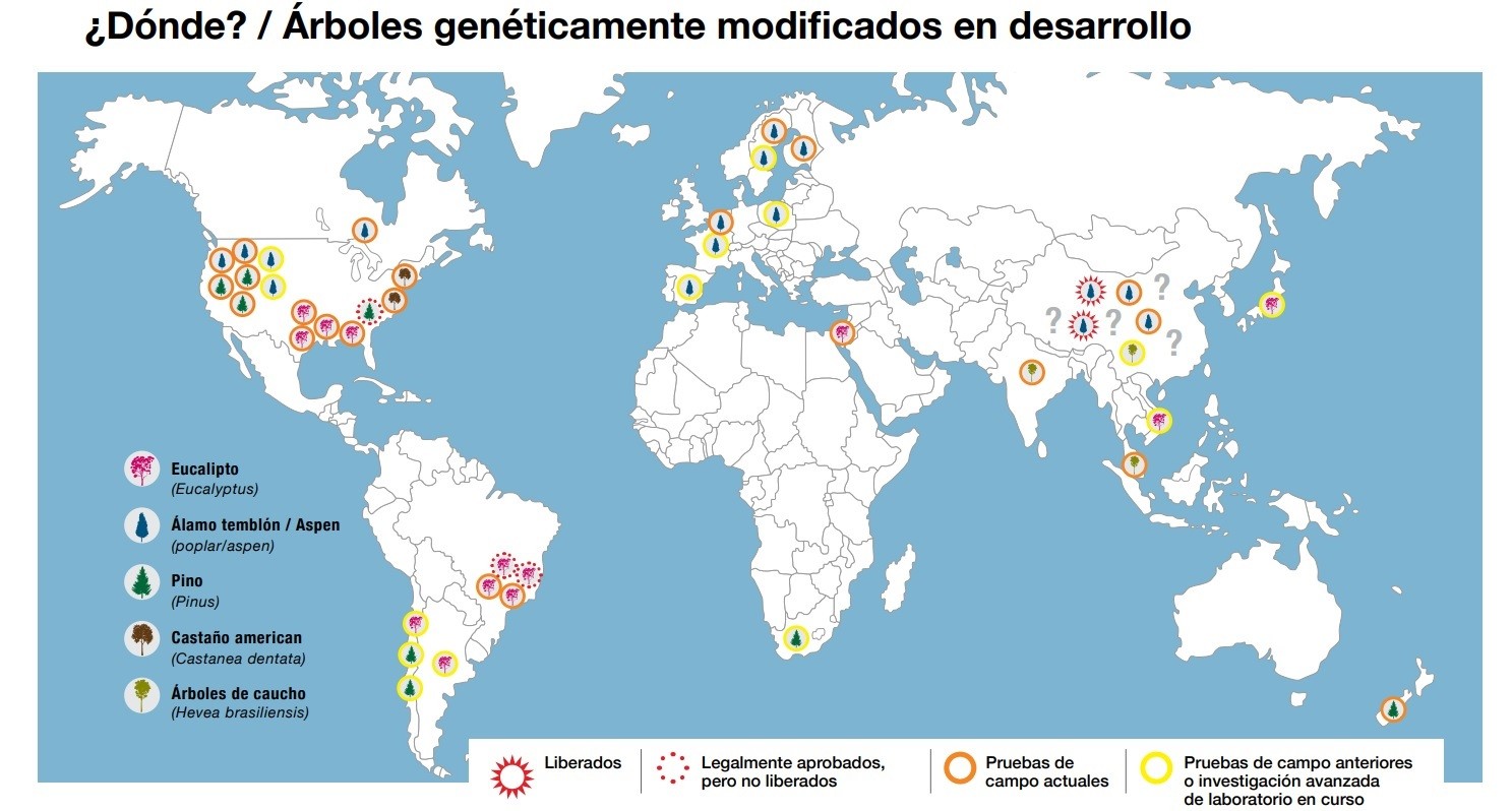 Ann Peterman, organizadora del evento, expresó que actualmente son "Brasil y Estados Unidos los dos países que han desarrollado más la industria de los árboles transgénicos o genéticamente modificados. A esto se le puede agregar China, la cual también ha experimentado de forma importante, sin embargo los datos no son públicos".
