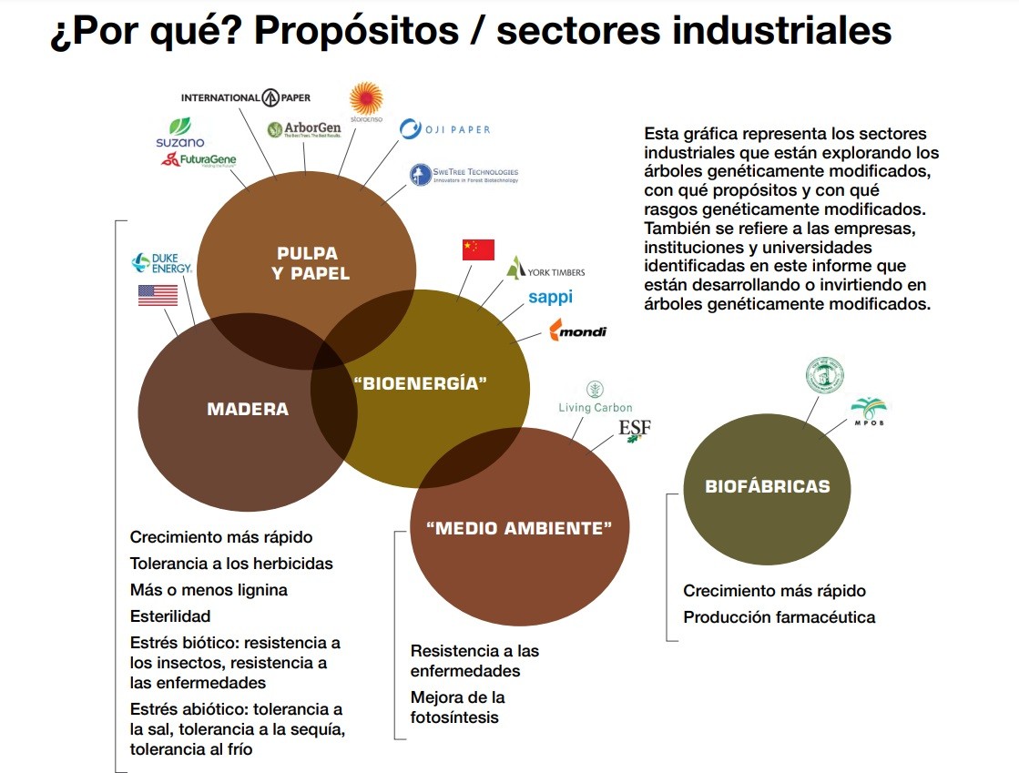 Usos del desarrollo de arboles transgénicos en la cadena productiva mundial y empresas asociadas al desarrollo de transgénesis