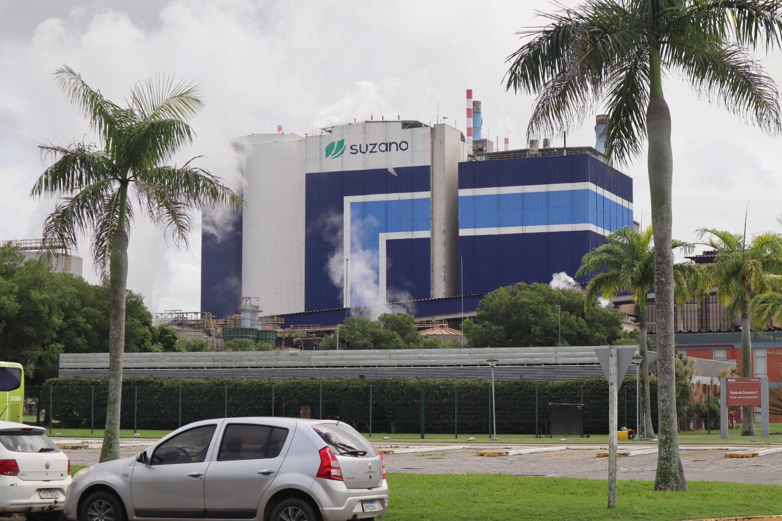 Suzano es la principal empresa forestal y celulosa en Brasil. Además es la empresa con mayor desarrollo e investigación en arboles transgénicos. En la imagen planta de celulosa Aracruz