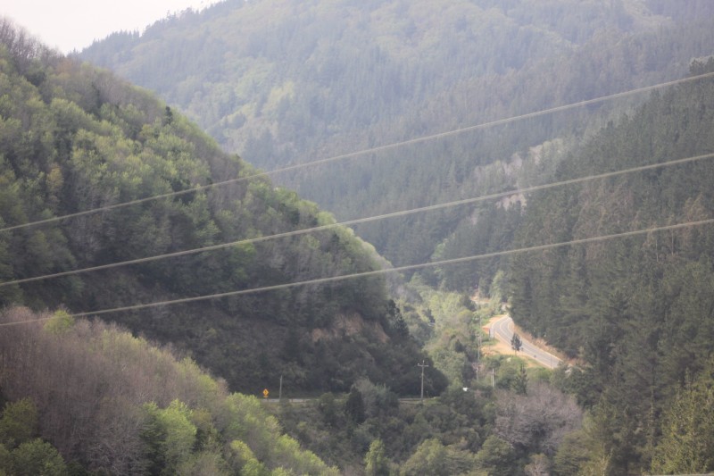 Reserva Nacional Los Ruiles a un costado de la carretera Cauquenes-Chanco, rodeada de monocultivos forestales de Pinus radiata