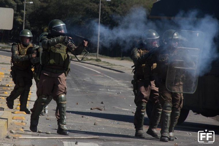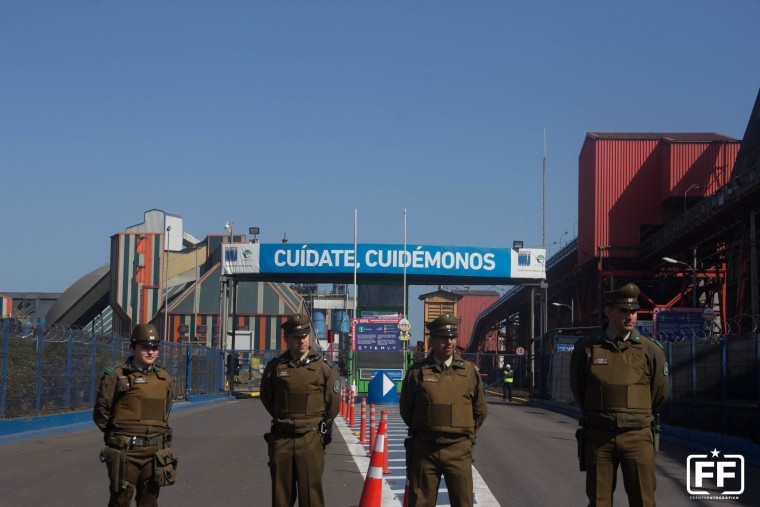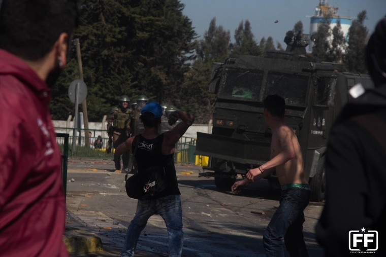 Lo que sí es visible a todas luces son los diferentes puntos de seguridad y cercos policiales que se han montado en la zona para proteger el avance de la devastación y el tan manoseado concepto de “progreso”. Carros policiales, micros de carabineros, carros lanza-agua y un número importante de efectivos de fuerzas especiales se encuentran desplegados en el sector de Ventanas, justo en la carretera que da acceso a los camiones que ingresan al polo industrial. Los efectivos policiales también se encuentran en la entrada de la población La Greda, lugar que fue escenario de largos enfrentamientos con la policía durante el sábado 8 de septiembre, en donde manifestantes, pobladores y pobladoras de La Greda dieron batalla contra las fuerzas represivas del Estado.