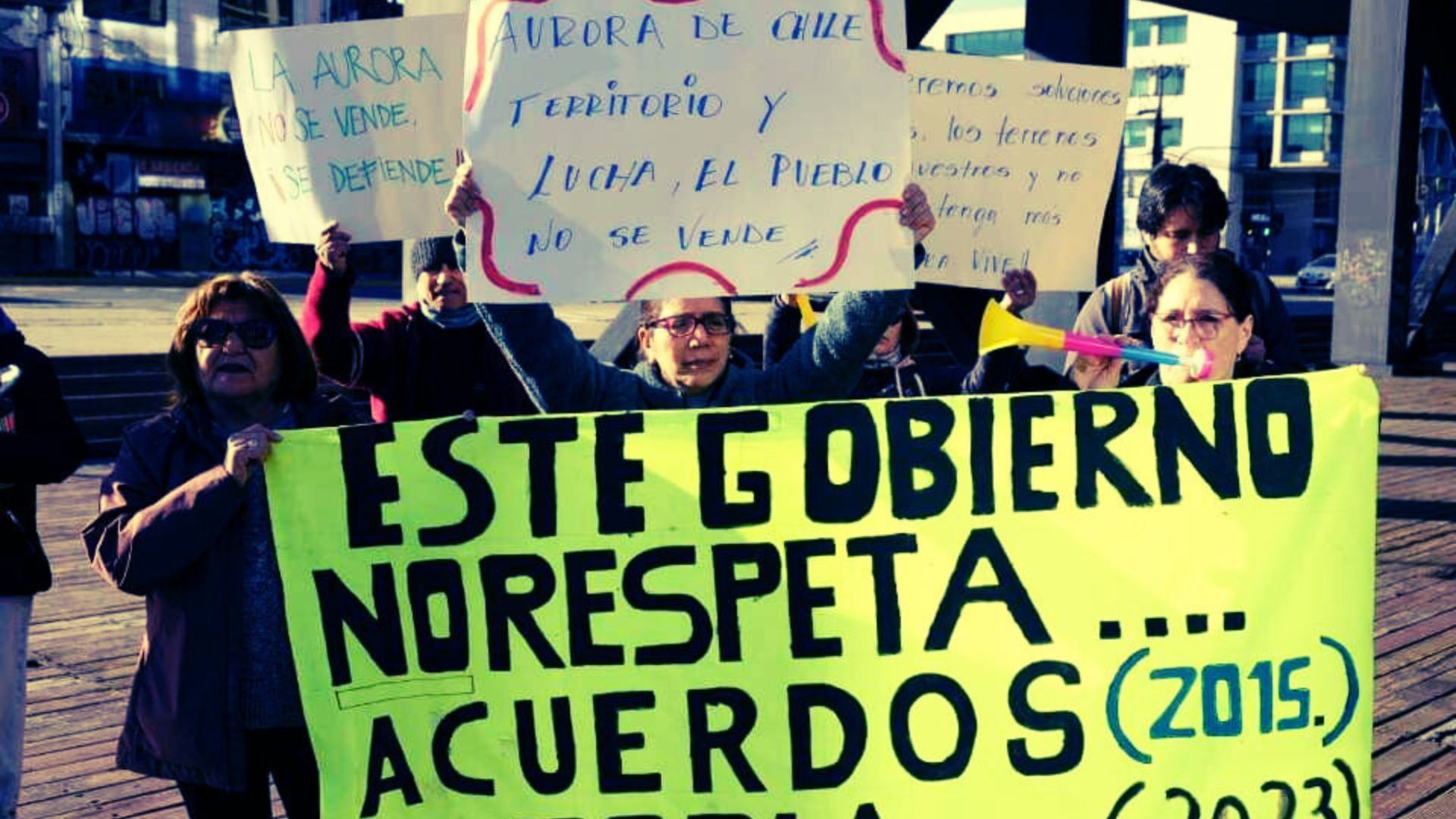Este viernes, pobladores y pobladoras de la Aurora de Chile, población emblemática al borde del río Biobío en Concepción, realizaron una manifestación en las afueras de la SEREMI de Vivienda en calles Rengo con O´Higgins para expresar su "enojo, malestar y decepción ante del desinterés y abandono estatal de las autoridades responsables" de su futuro.Por: Alberto San Martín