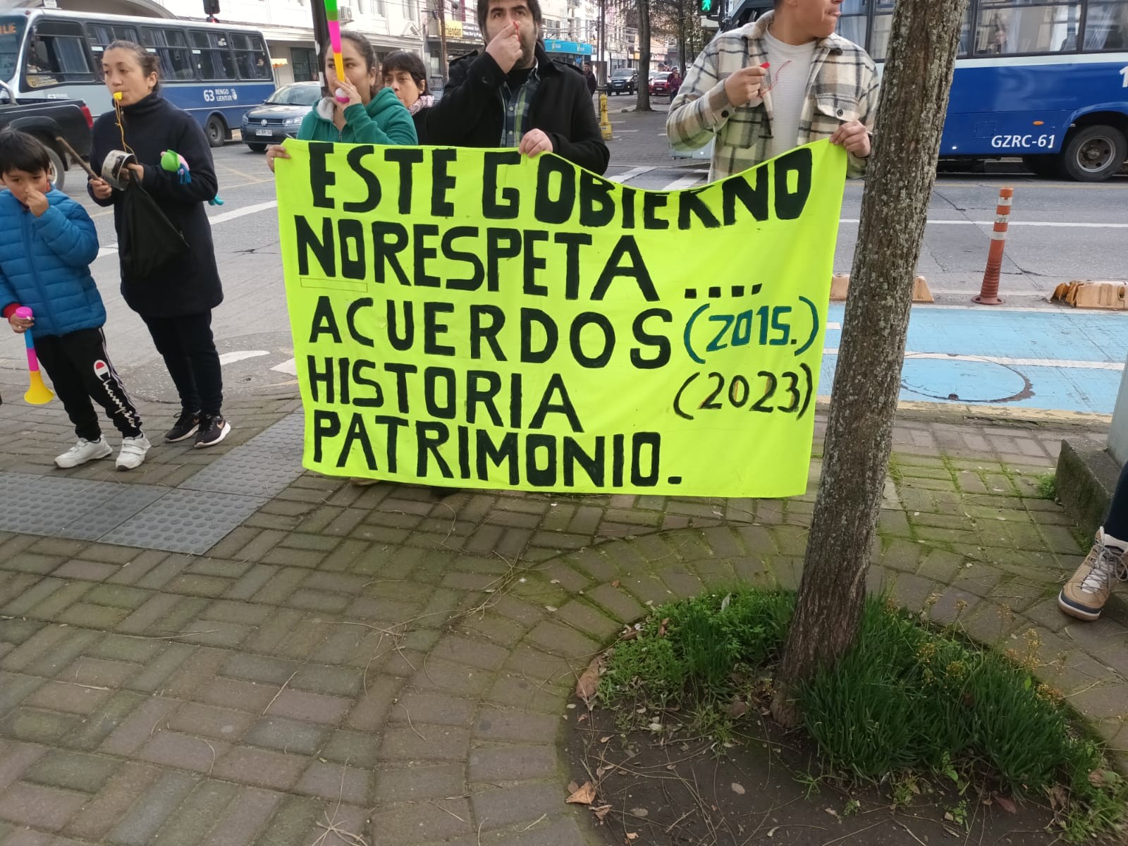 En la manifestación, se hizo énfasis en exigir solución para la problemática de la escuela Santa Catalina, afectada en su red de alcantarillado por la construcción del puente Chacabuco. "Es insostenible que nuestros niños, niñas y adolescentes no cuenten con las condiciones mínimas de alimentación, además de que asistan diariamente a estudiar dentro de un entorno rodeado de basura".