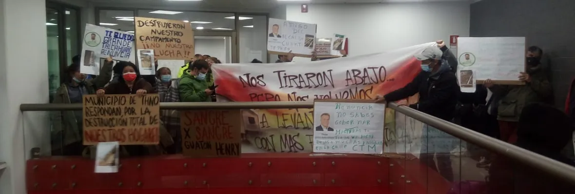 Desde las 10:00 de la mañana las y los pobladores, llegaron hasta el frontis del municipio de Talcahuano, para luego ingresar y llegar hasta la misma oficina del consejo municipal, donde se encontraba Henry Campos. En el lugar interpelaron al alcalde y lo responsabilizaron de los violentos desalojos ocurridos hace ya dos semanas, de los que se desentendió pidiendo disculpas, según afirmaron las dirigentas luego de conversar con él.