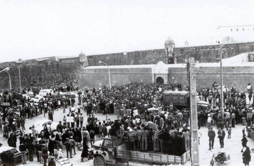 Pueblo se concentra frente a la prisión de Peniche esperando la liberación de los y las prisioneras políticas 1974. Foto de Luis Correia Peixoto Museo Municipal de Peniche