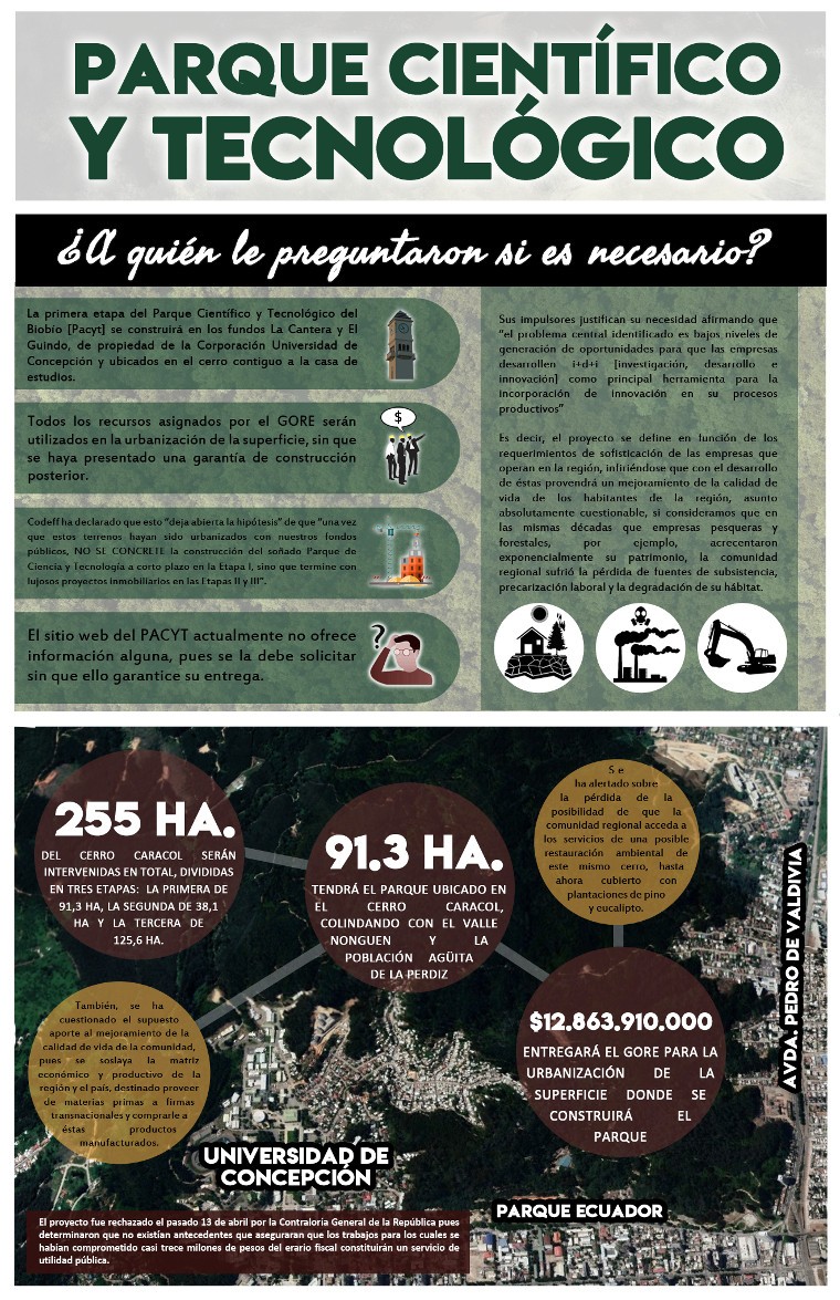 [resumen.cl] El proyecto Parque Científico y Tecnológico del Biobío [Pacyt] ha estado sujeto a una campaña publicitaria orquestada entre instituciones públicas, clase política, empresas y medios de comunicación. Por su parte, la web del Pacyt no entrega información, sino que solo ofrece la posibilidad de solicitarla, obviamente sin garantizar su entrega.