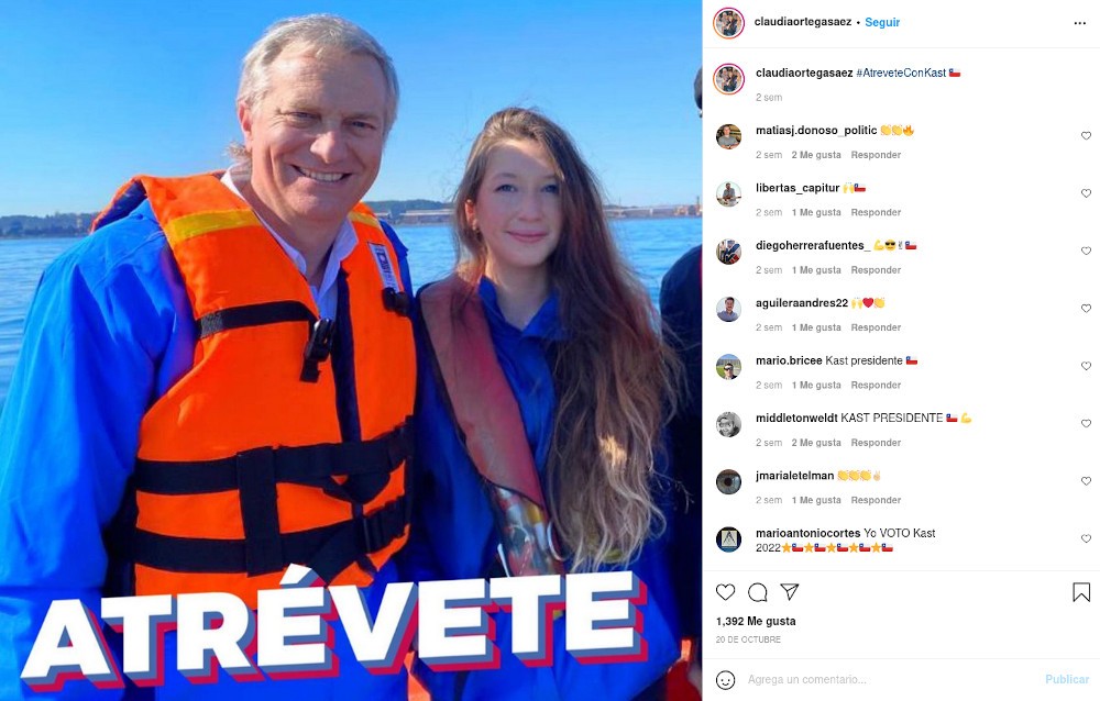 En sus redes sociales se le puede ver posando junto al diputado evangélico Leonidas Romero, quien en su slogan publicitario señala “Fiscaliza Conmigo” y que ha llevado a Contraloría una serie de irregularidades de organismos públicos y también se le ve en numerosas fotos con el candidato pinochetista a la presidencia, José Antonio Kast.