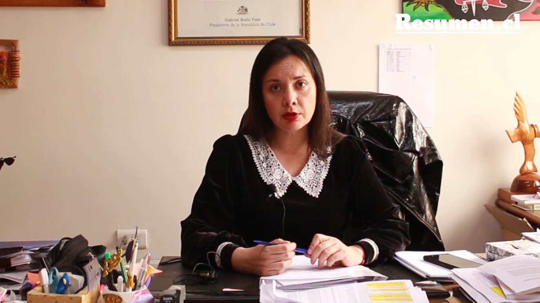 Ana Albornoz, alcaldesa de Santa Juana, entrevistada durante el reportaje audiovisual