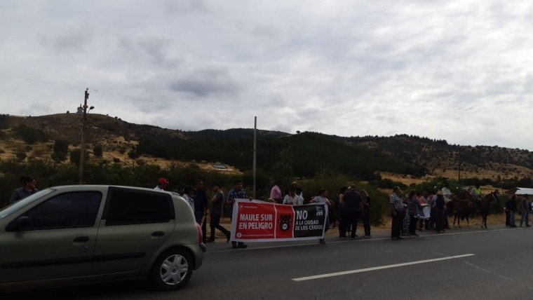 [resumen.cl] Este jueves en la ruta Los Conquistadores entre San Javier y Cauquenes, vecinos de distintas localidades rurales de ambas comunas protestaron contra los impactos ambientales del megaproyecto chanchero: malos olores y aumento de la presencia de moscas en el sector. Parte de los compromisos de la empresa al ser aprobado su bullado proyecto era la nula emisión de olores, mitigados con un biodigestor, argumento que jamás convenció a sus opositores. Luego de más de un año de funcionamiento, varios episodios de emisiones y denuncias ya van caracterizando la zona, aún cuando el proyecto no ha comenzado a funcionar con toda su capacidad. Agrupaciones y vecinos de la zona se encuentran preocupadas también por el aumento de consumo de agua en una zona crítica de escasez hídrica.