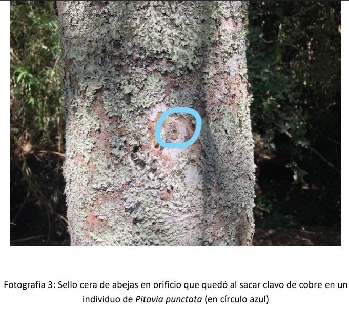 Sin embargo, para el momento de fiscalizar, no se identificaron especies con QR clavados, sino que estos "se encuentran fijados a estacas enterradas en las cercanías de cada individuo". Posteriormente, Conaf era informada que "estas láminas con código QR estaban clavadas en el fuste a la altura del DAP (diámetro a la altura del pecho) con clavo de cobre de 4 cm de longitud, y que posterior a la denuncia en las redes sociales, estas fueron retiradas y puestas en estacas", sellando orificios con cera de abejas. Todo el proceso, sin presencia del organismo.