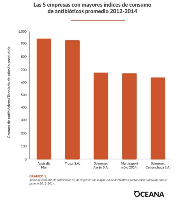 [resumen.cl] La semana pasada, la ONG de conservación marina Oceana publicó el ranking de las empresas salmoneras que operan que Chile y que más utilizaron antibióticos por tonelada de peces producida.