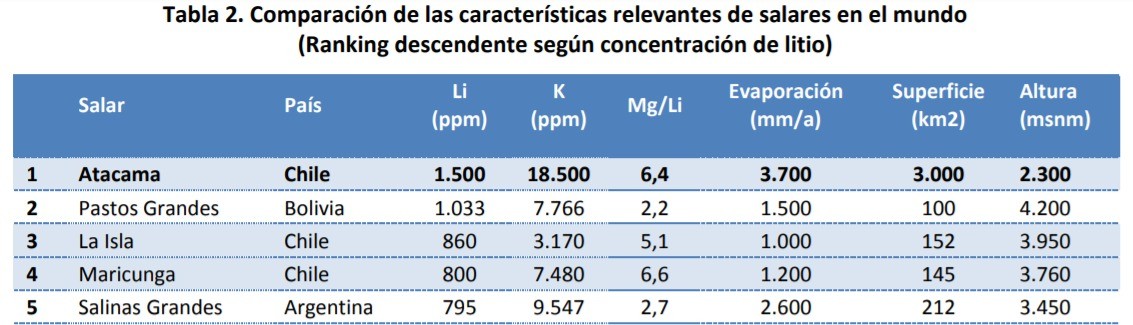 (Fuente: Comisión Chilena del Cobre. (2014). La explotación del litio en Chile en el contexto del mercado internacional, p. 4).