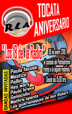 Para celebrar los 18 años de trabajo continuo, el equipo de la radio está organizando una tocata con artistas de todos los estilos. Este evento se efectuará en el patinódromo de Laguna Redonda -sector contiguo a Lorenzo Arenas 3 donde están las dependencias de la emisora-, el día sábado 6 de enero a partir de las 15.00 hrs. Los vecinos, auditores, dirigentes sociales y territoriales son los invitados especiales en esta significativa fecha donde se pone en valor la trayectoria, lucha y motivación de cada uno de los integrantes de esta estación radial.