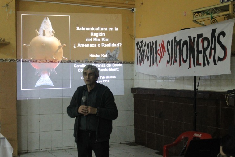 Este viernes se realizó en el Gremio de Estibadores de Talcahuano, ubicado en calle Colón 970, un foro - conversatorio que abordó la amenaza de instalación de centros de cultivo salmoneros a las costas de nuestra región. En la instancia participó el biólogo y activista Héctor Kol y se describieron los principales impactos socioambientales de esta industria, y además las características del apoyo estatal y académico, que propicia estos proyectos extractivistas, entre otras temáticas.