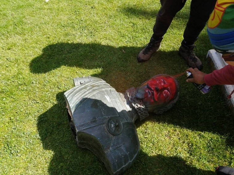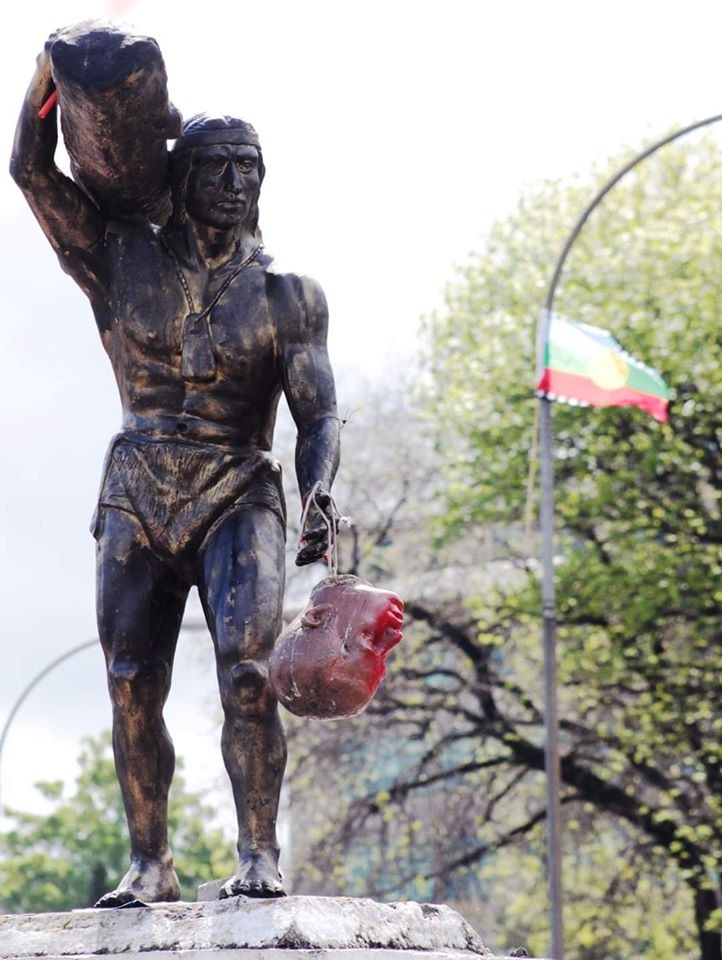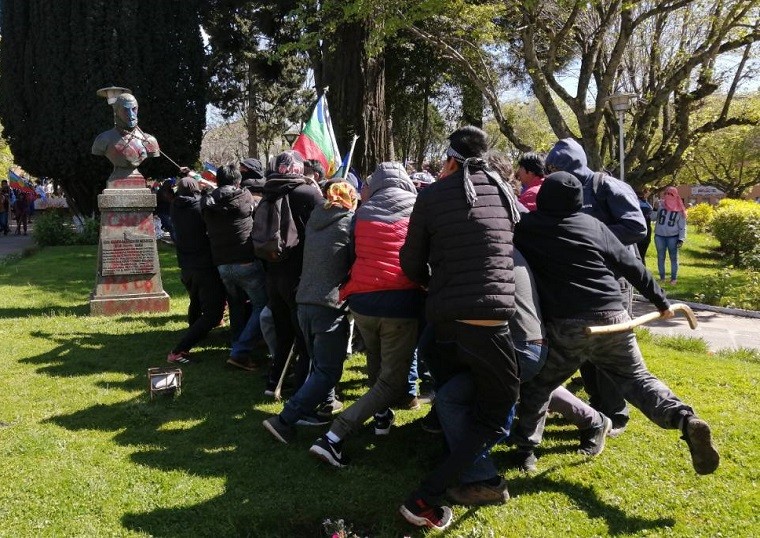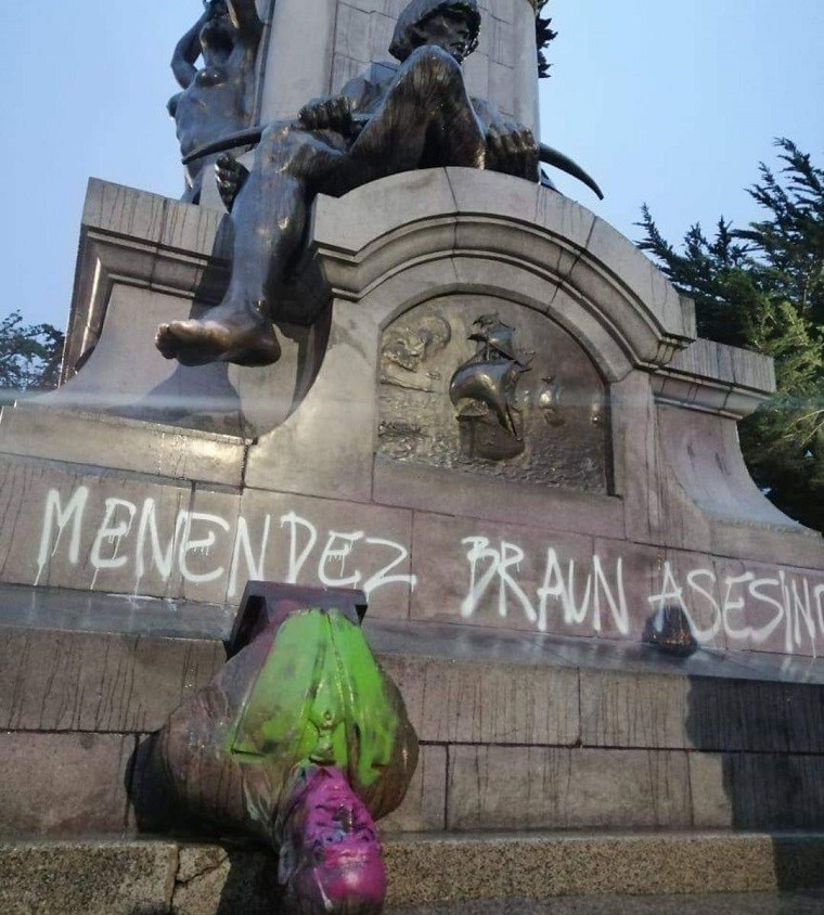 Se debe recordar que cuando los colonizadores fueron expulsados, llegaron los “libertadores de la patria” que accedieron al mando de las nacientes repúblicas y Estados-Nación americanos. Crearon un sistema en donde gobernaban quienes dominaban de forma más natural la cultura europea, es decir los hombres de la elite, blancos y de familias ricas. La estructura de dominación racial-colonial, patriarcal y de clase se mantuvo intacta, aún con los "héroes" liberales de la independencia en el poder, y más cuando los monárquicos encubiertos como Diego Portales accedieron al poder. Mención especial para la destrucción en la ciudad de Punta Arenas del busto de Menendez Braun, catalogado como autor material e intelectual del genocidio del pueblos patagónicos en pleno siglo XX. Hecho que nos recuerda como el racismo ha persistido bestialmente hasta épocas recientes. En donde el ejemplo actual de la represión al pueblo mapuche es el caso más contingente. [caption id="attachment_68739" align="alignnone" width="760"]? AHORA | Prenden fuego en la estatua de Bernardo O'Higgins en la Plaza de Armas de Los Ángeles. pic.twitter.com/skFHt1u9h4