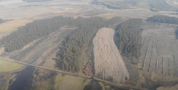 Foto tomada con dron aéreo el año 2019 que muestra parte de los sectores plantados con eucaliptus.