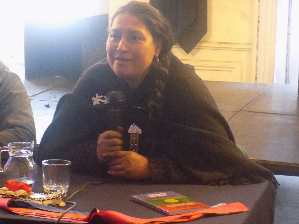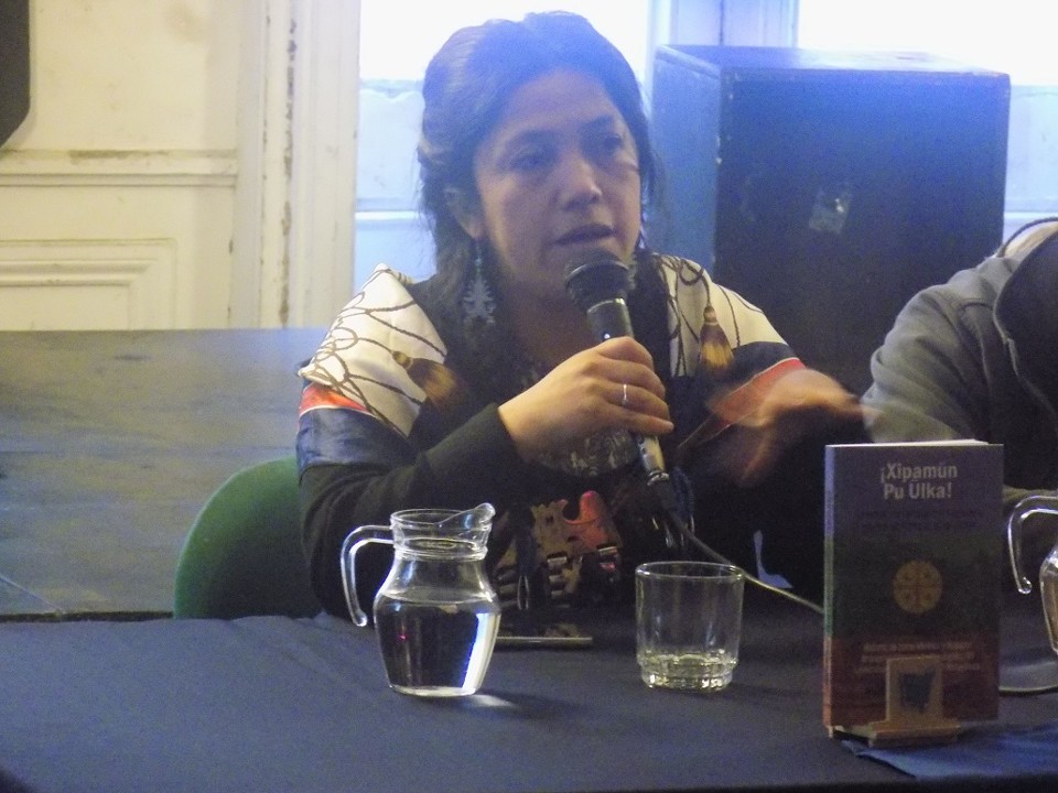 “Este libro fue generado a partir justamente de las diferencias que tenemos. Dentro del Movimiento Mapuche tenemos diferentes formas de pensar y de ver el conflicto, pero tenemos mucho más cosas que nos unen que las que nos dividen. Frente a eso, las Comunidades y mucha gente de las Comunidades, incluyendo a Dirigentes, a los Presos Políticos de Lebu, se respalda el libro porque se hizo en base al conocimiento que la gente tenía y, como decía, a pesar de las diferencias, porque nos sentamos muchas veces con gente que no nos agrada tanto en su posición, pero sí maneja la información y los datos, y estos están respaldados por investigaciones, entonces a través de eso quisimos dar a conocer y nos acercamos a ellos. Esto lo quisimos dar a conocer, como una respuesta al Gobernador Toro, que fue uno de los grandes persecutores que tuvimos en el Gobierno anterior de Bachelet, que nos golpeó muy fuertemente con el tema del “robo de madera” y la “asociación ilícita para el robo de madera”. De hecho, más de 18 causas donde se ha visto el tema de la tortura y apremios ilegítimos, como también poner casquillos en los bolsillos de los lamienes significaron 8 a 9 meses de cárcel. En el caso de nuestros familiares directos, en el caso del hermano de Mariely y en el caso de mi esposo, ellos fueron condenados a 5 años por atentado incendiario. A través del libro queremos decir que aquí hay una estrategia en donde se piensa como abordar el tema Mapuche desde distintas perspectivas y este libro sale también en respuesta a las Mesas de Diálogo que se han hecho en la Araucanía. En la Araucanía se juntan las supuestas víctimas de los atentados, todas las policías, los Intendentes, los Gobernadores, los camioneros, los Fiscales y algunos personeros políticos, para tomar decisiones respecto a cómo abordar el tema Mapuche. Nosotros decimos que el tema Mapuche pasa por abordar el problema de fondo que es la tierra. Y en este libro, con mucho orgullo queremos decir que aquí estamos respondiendo, para explicar cómo fueron robadas las tierras, en un saqueo que comenzó el año 73 en adelante, pero todos sabemos que hay una larga historia de despojo que viene de mucho más atrás, y que pasa por una guerra cruenta que fue la “Pacificación de la Araucanía”. (…)Este libro fue hecho de forma autónoma, con recuperación de madera que se les hizo a las mismas empresas forestales para financiarlo, y es un testimonio con los datos para dar argumentos para defendernos en contra del saqueo y se pueda entender nuestra lucha.”